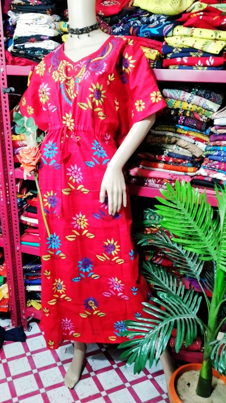 Katha stitch kaftan nighty